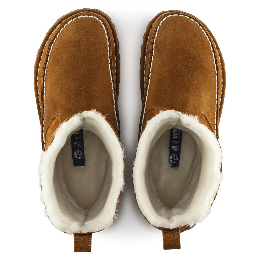Decoratively stitched and lined with cozy shearling, the Lahti pull-on boot helps you stand out and stay comfortable. Soft suede gives the upper a heritage, textured look, keeping it flexible enough for you to fold over for different heights. Genuine, temperature-regulating shearling lines the inside to help keep you comfortable in colder weather. Underfoot, a Deep Blue footbed optimizes your comfort, with a moisture-wicking lining and PU base that works with your natural walking motion on long, active days. Tread comfortably.
